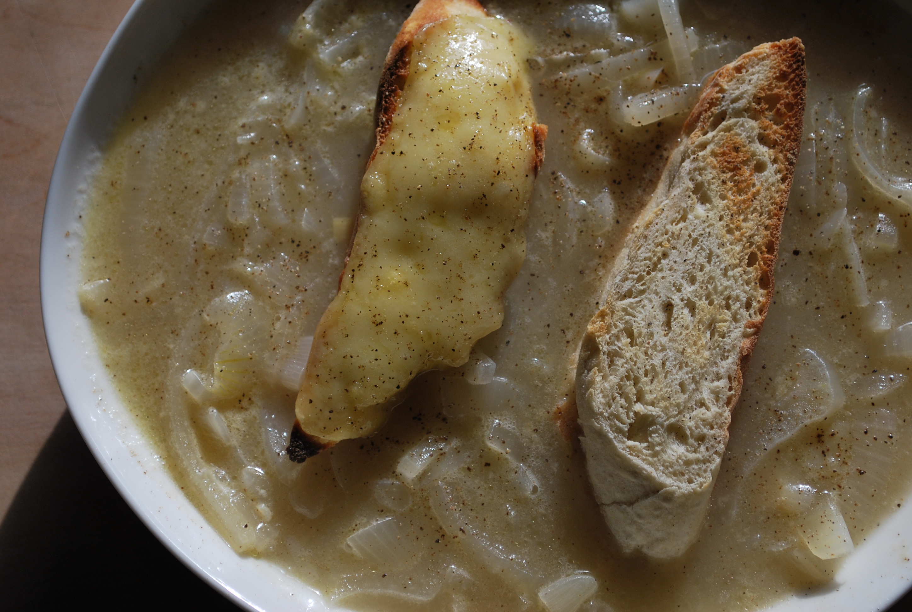 french onion soup with white sherry and (gruyère) toasts