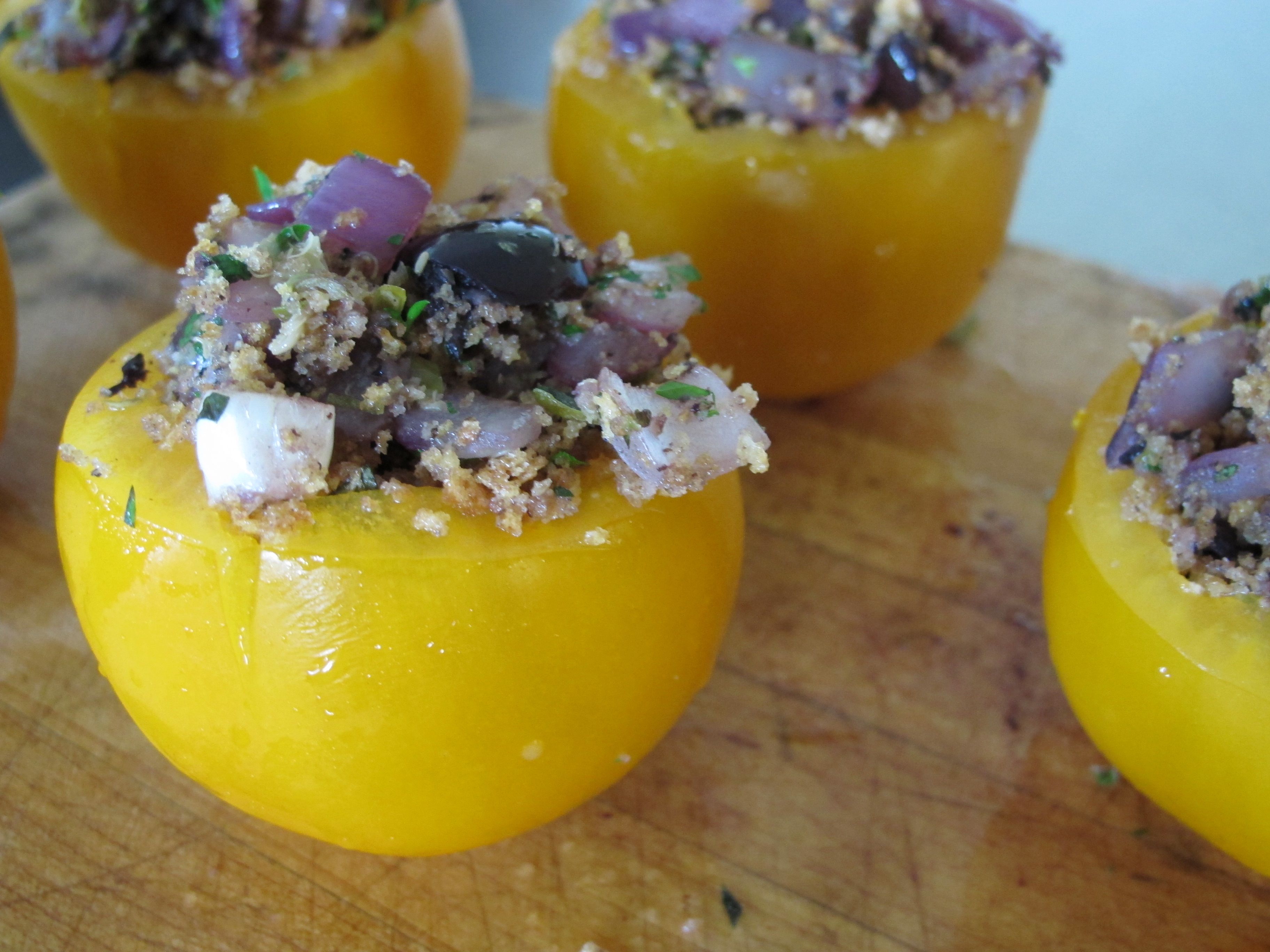 olive panko and garlic stuffed tomatoes