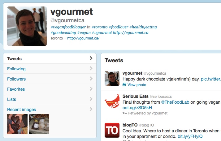Oh and I’m getting some upgrades done to the site which will make it new and improved for you! One of those upgrades is direct links to v:gourmet twitter and facebook. You’d think I’d have figure that out awhile ago but I’ve been too busy cooking delicious food and shooting awesome v:gourmet videos. So, until I get my mise en place where technology is concerned, here are the links to twitter and FB. Check it out – they are just another couple of ways to share the love and follow what’s happening with all things food, all things vegan, all things delicious in the kitchen.