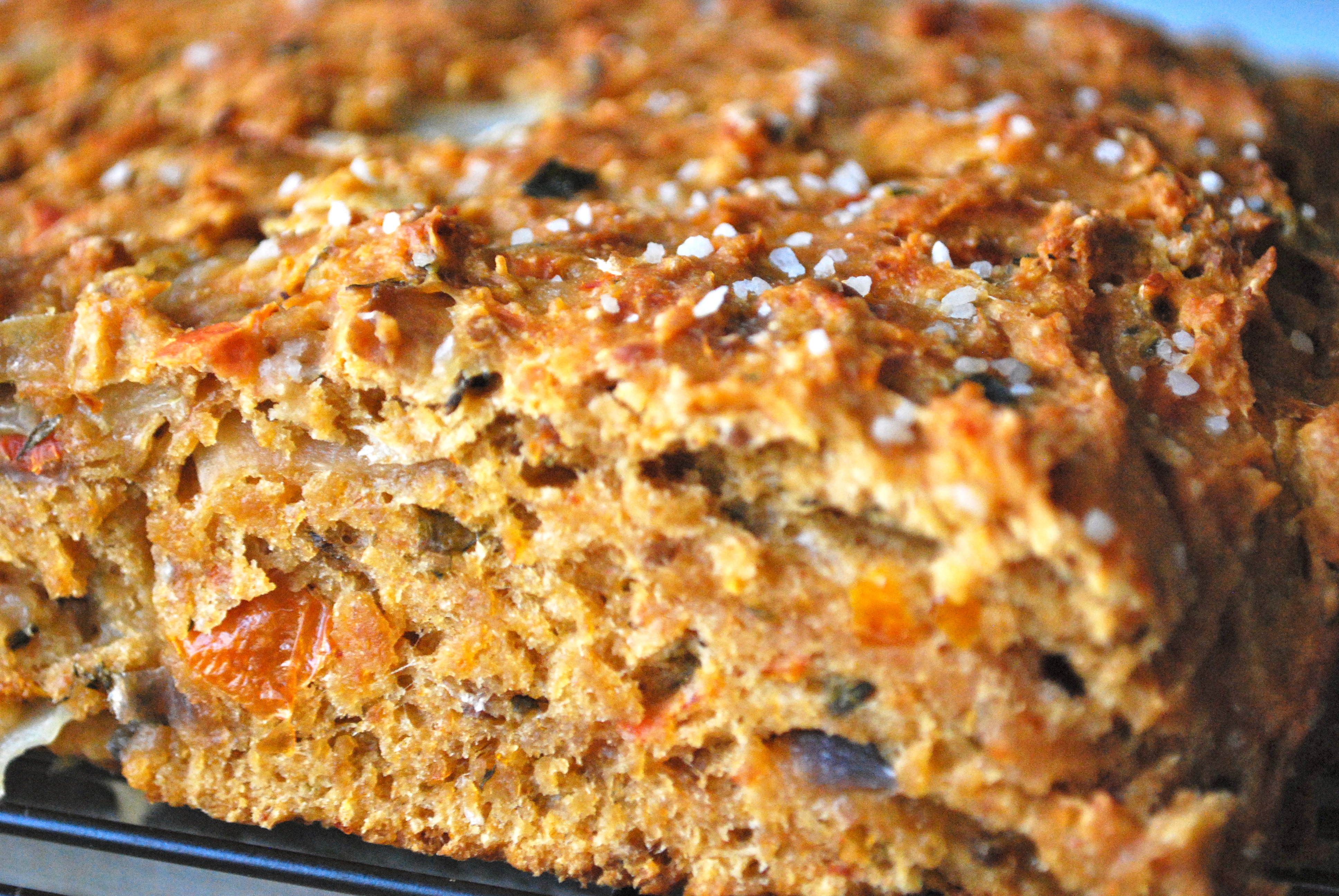 Tomatoes, onions, and herbs have always come together in a happy marriage. In this recipe they provide the building-blocks for a savory, versatile loaf topped with some smoked sea salt to provide additional depth of flavour. Any breadbasket would welcome a few pieces of this bread for the dinner table. It’s also great as a mid-afternoon snack, in the kids’ lunch bag, or some have even been known to eat it for breakfast.