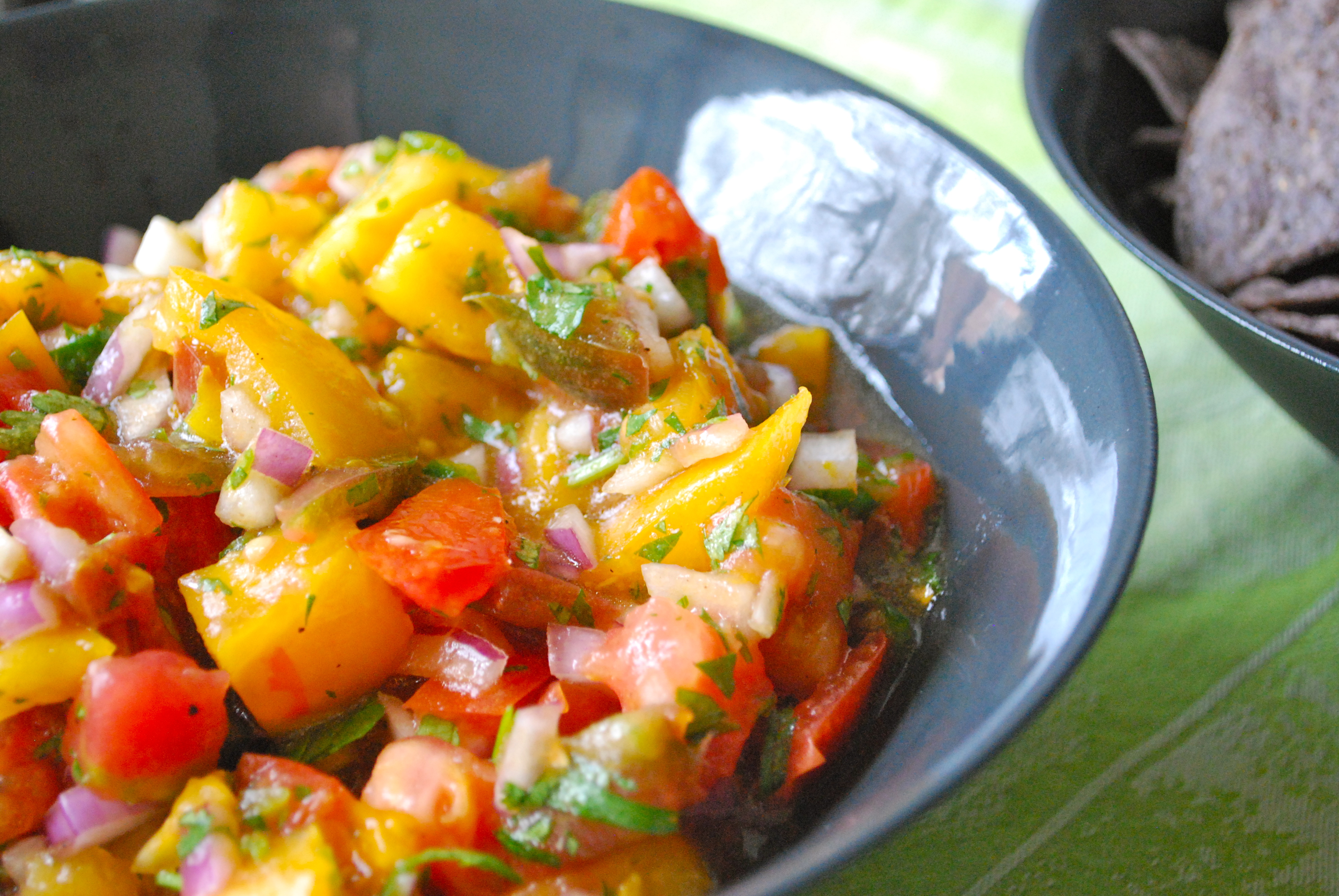 I think we ate our weight in pico de gallo when in Mexico. This ever present condiment, also called salsa fresca, is a must on a hot summer afternoon with corn chips, alongside a bean and rice burrito or open face guac sandwich for lunch, or at dinner as a side to blackened rice and black bean stew. It adds texture, flavour, and the freshness tomatoes, cilantro, and lime juice afford so elegantly. It only takes a second to make and is second to none when the kids have the munchies and need a healthy snack.