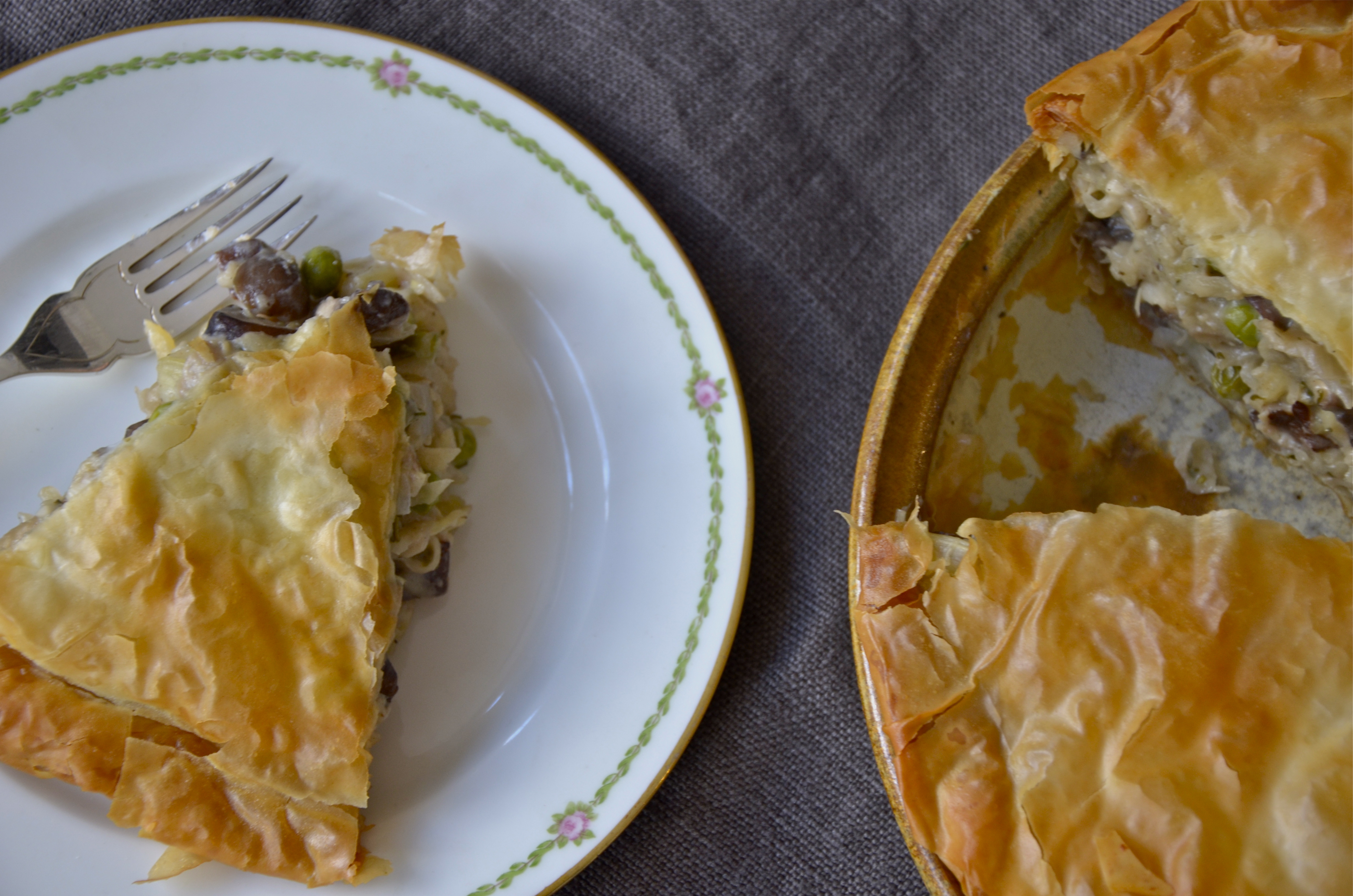 Last January I featured the Creamy Triple Mushroom Gemelli noting that every winter season should have its own favourite mushroom dish. Back in January 2011 it was Winter Portobello Stew. This January it’s this earthy, herb-infused mushroom tart with a beautifully browned flakey filo crust. It’s pretty easy to make although filo is always a little finicky. But on a dark, cold Sunday afternoon with some good music on and a winter exilir in hand like the hot apple mull, who cares? Let it take it awhile while you warm yourself by the hot stove.