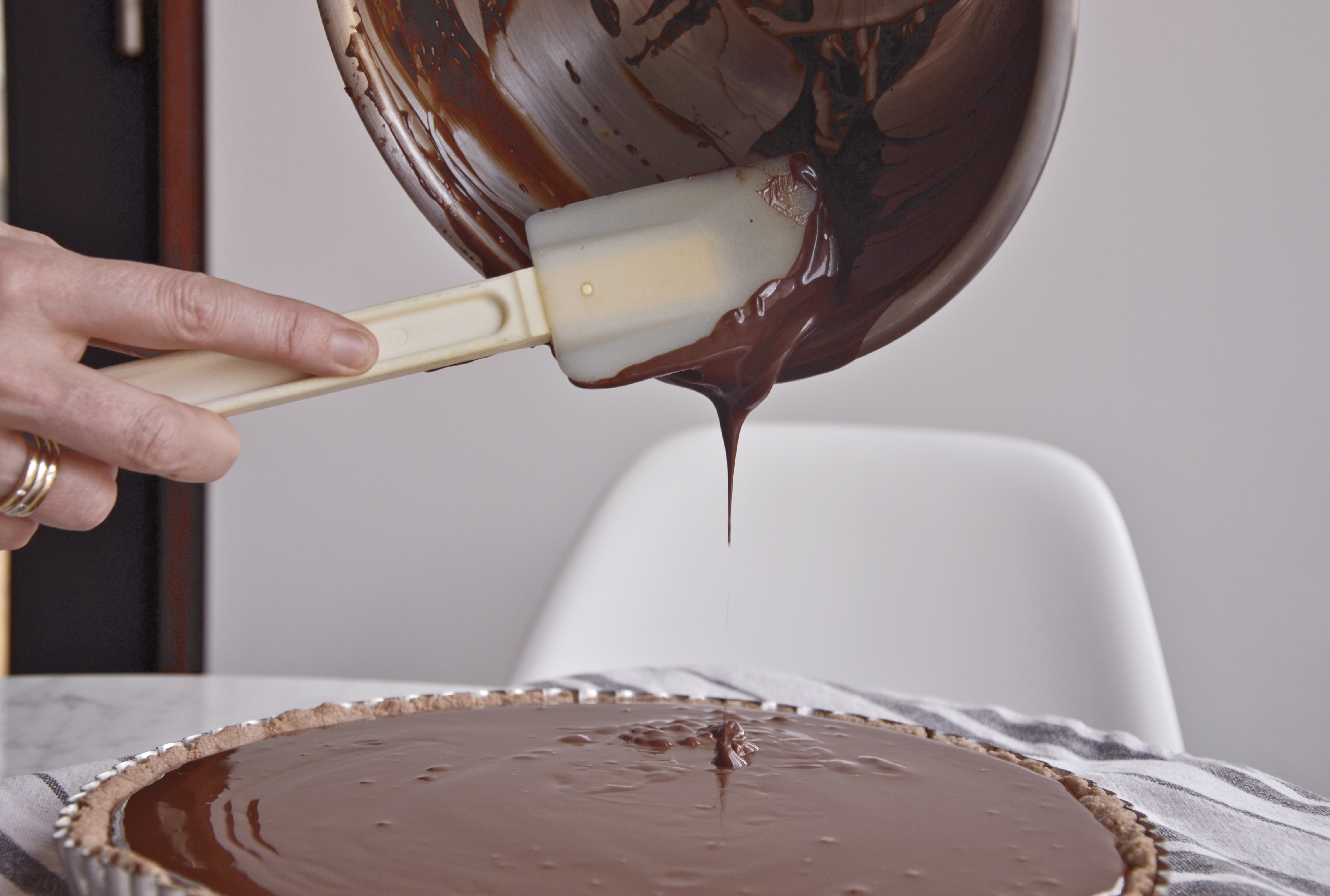 Pour the filling into the baked tart shell and use an offset spatula to spread it evenly. Give the tart a gentle but firm rap on the counter to settle the filling and remove any air bubbles. Let the tart cool to room temperature, which should take about an hour. When it’s completely cool, sprinkle the fleur de sel evenly over the top and serve.
