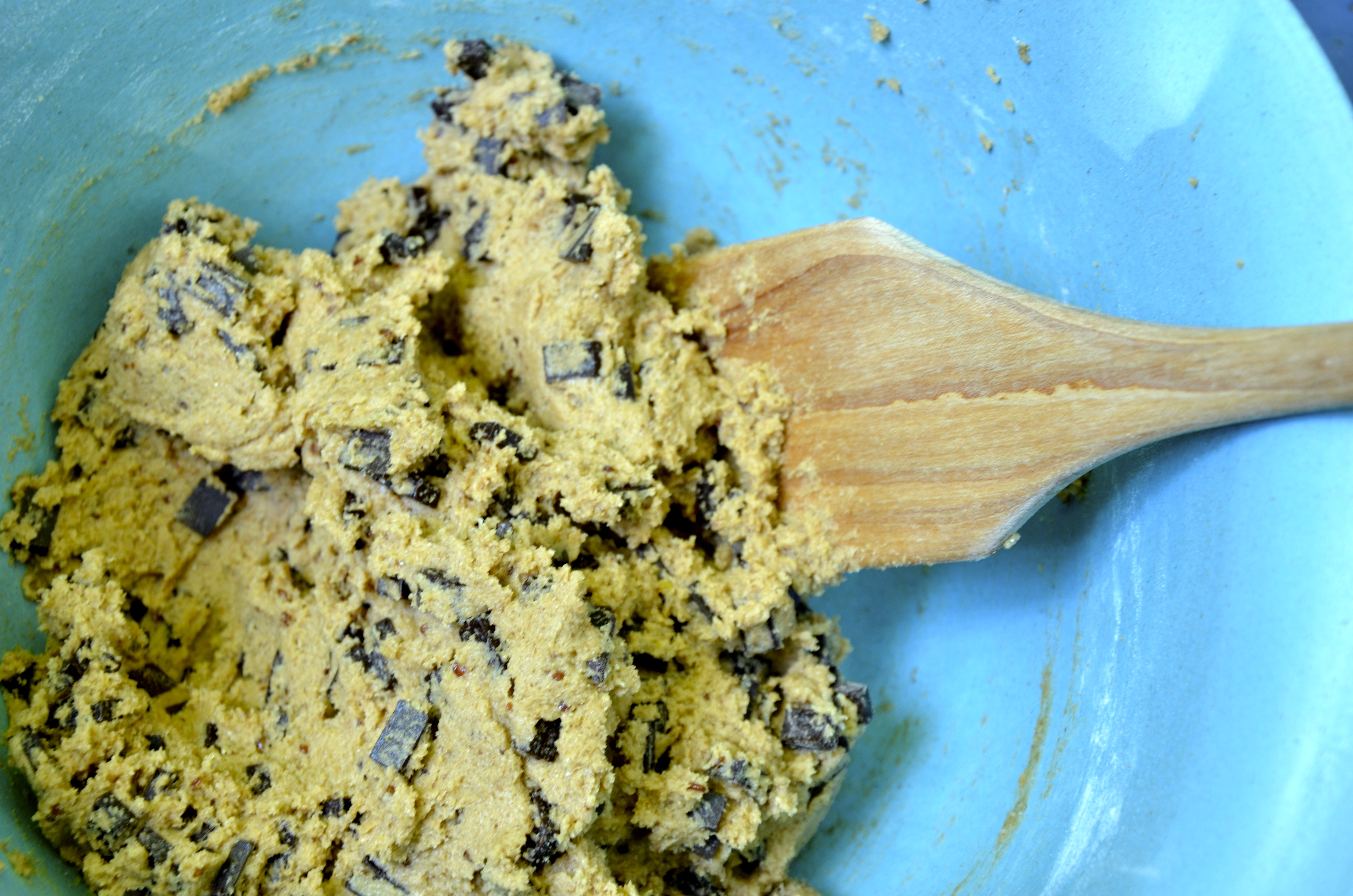 Preheat oven to 350. In a large bowl, combine the almond meal, almond butter, honey, flax and cinnamon. You may need to get your hands in there to thoroughly mix everything! Test the dough’s stickiness by forming a small ball. If it’s too crumbly and won’t hold together, add one to two tablespoons of water.