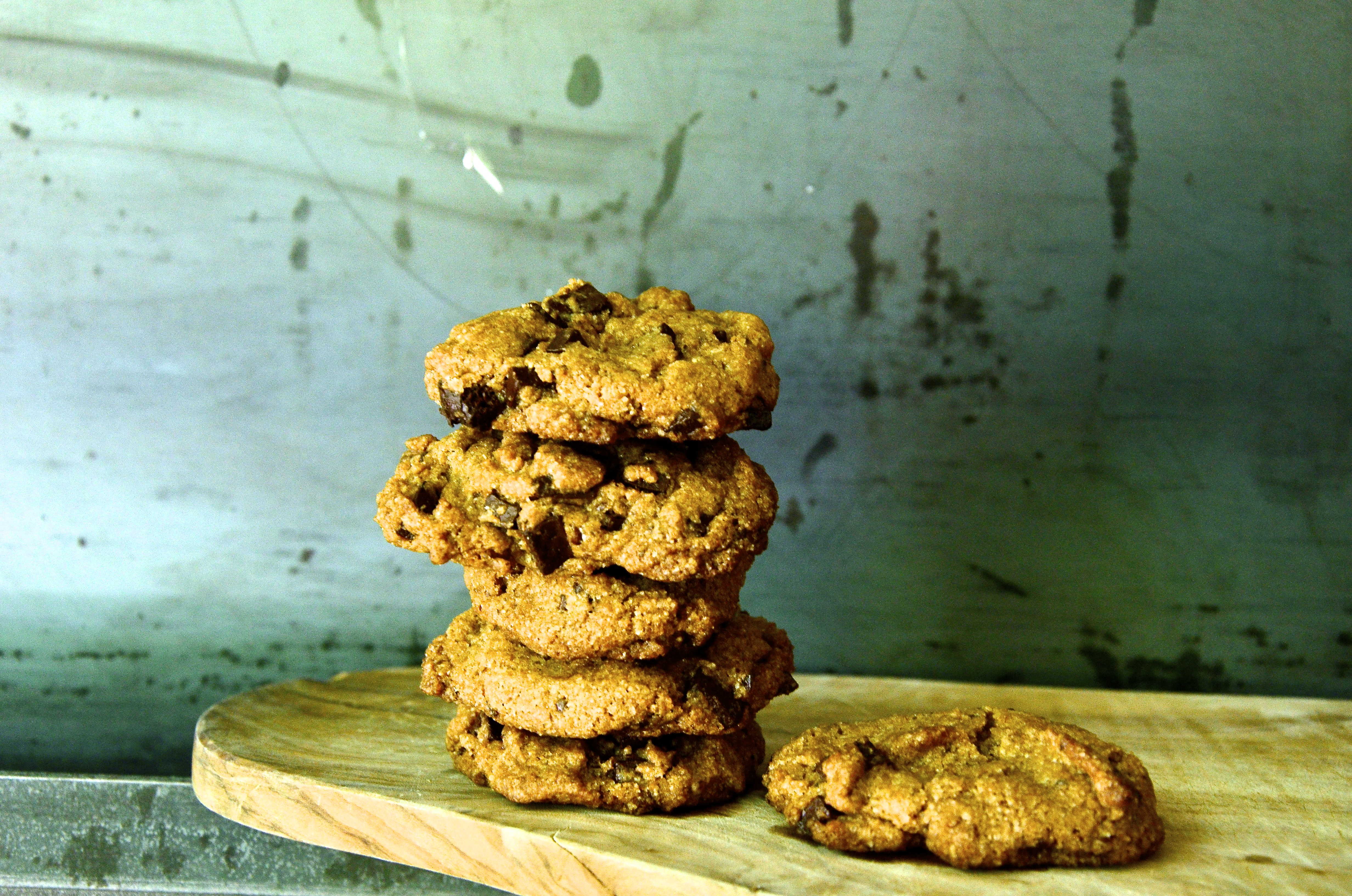 I got this recipe from oh she glows who got it from someone who got it from someone who got it from someone else. The one thing I love about these food blogs is that these ideas – fantabulous ideas like vegan chocolate chip cookies – are like seeds being scattered across the planet taking root in the unlikeliest of places. Only to grow and be scattered once again. Like a dandelion. In fact, we got the tip from Andrew’s project manager who hails from the UK but is working here in Toronto bringing vegan chocolate chip cookies that his girlfriend made to work. I never would have imagined – back in the day when I was cooking up a batch of the non-vegan version every week to share with friends, crushes, and other motely sorts – that such a thing would be possible. But possible it is now in 2013. And you have to love it. So thanks to oh she glows and to the long list of others who have tried these, perfected them, passed them on, and so on and so on.